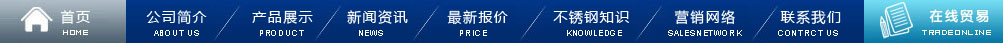 首頁 | 公司簡介| 產品展示 | 新聞資訊 | 最新報價 | 不銹鋼知識 | 營銷網絡 | 在線留言 | 聯系我們